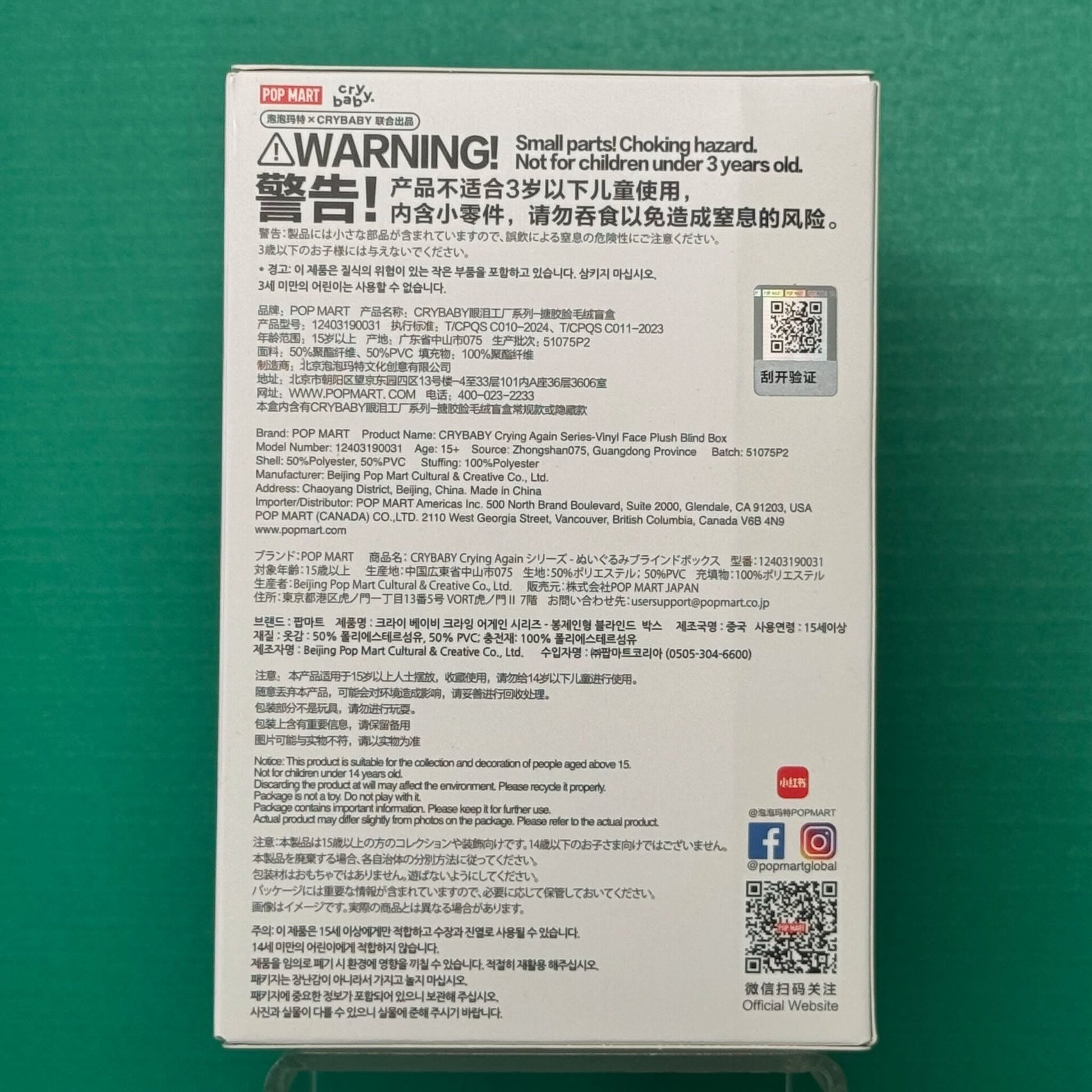 The CRYBABY Crying Again Series - Vinyl Face Plush Blind Box is an official Pop Mart collectible from the CRYBABY Crying Again Series, a soft collectible designed for display and gifting.